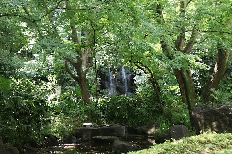 名主の滝公園(なぬしのたきこうえん)北区の区立公園です。江戸時代に王子村の名主、畑野孫八が屋敷内に滝を開き、茶を栽培して避暑のために一般に開放したのが始まりで、名前の「名主」の由来となります。園内は回遊式の庭園となっており、男滝(おだき)、女滝(めだき)、独鈷の滝(どっこのたき)、湧玉の滝(ゆうぎょくのたき)の4つの滝が復元されています。滝は地下水をポンプで汲み上げて水を流しており流水を停めてしまうこともあります。