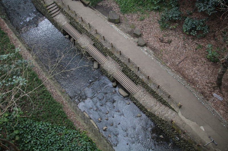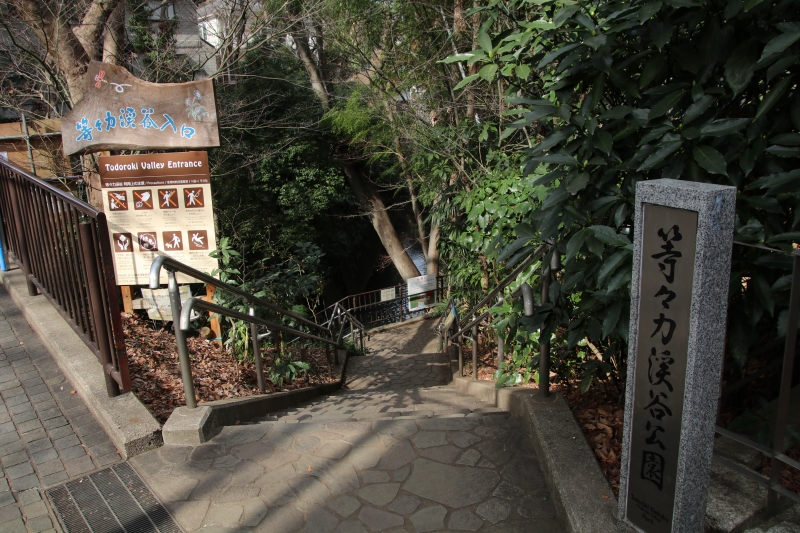 東急大井町線等々力駅から一番近い入口は徒歩約3分程度で、昔東急のゴルフ場があった名残のゴルフ橋のたもとから入ります。