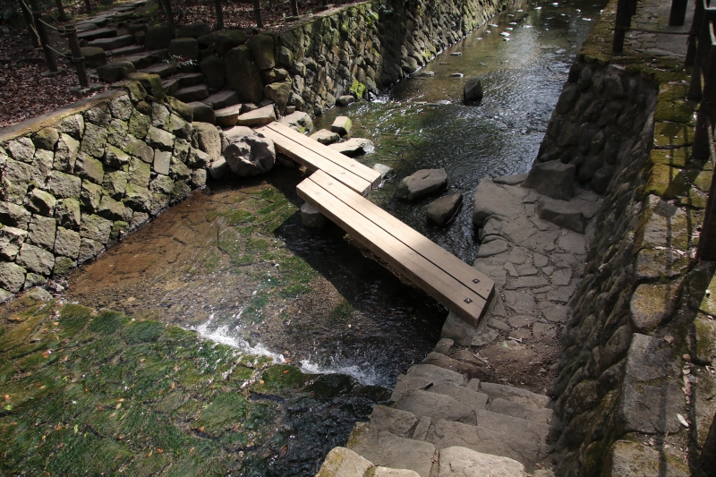 湿性植物や武蔵野台地の古い地層なども観察しながら途中に日本庭園などもあり、春の桜、、初夏の新緑、秋の紅葉の名所としても有名です。