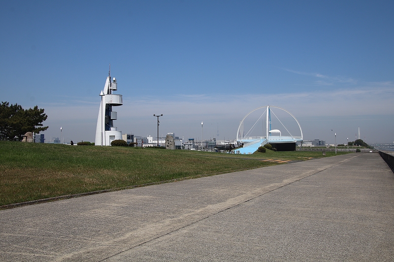 若洲海浜公園(わかすかいひんこうえん)は、元々東京湾岸におけるゴミの最終埋立地でした。1990年(平成2年)に東京湾に面した都立の海上公園として整備され、隣接する江東区立若洲公園とともに各種レジャー施設(若洲ゴルフリンクス、海釣り場、ヨット訓練所、キャンプ場、レンタサイクル等々)があります。また無料のエレベータで東京ゲートブリッジに上り東京の街並みを楽しむことが出来ます。